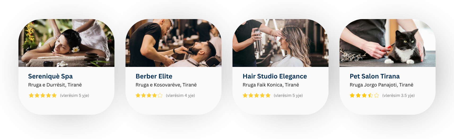 Zgjidh shërbimin që të duhet, sipas orarit që të përshtatet. Ndërsa bizneset konfirmojnë rezervimin pa telefonata, pa pritje.